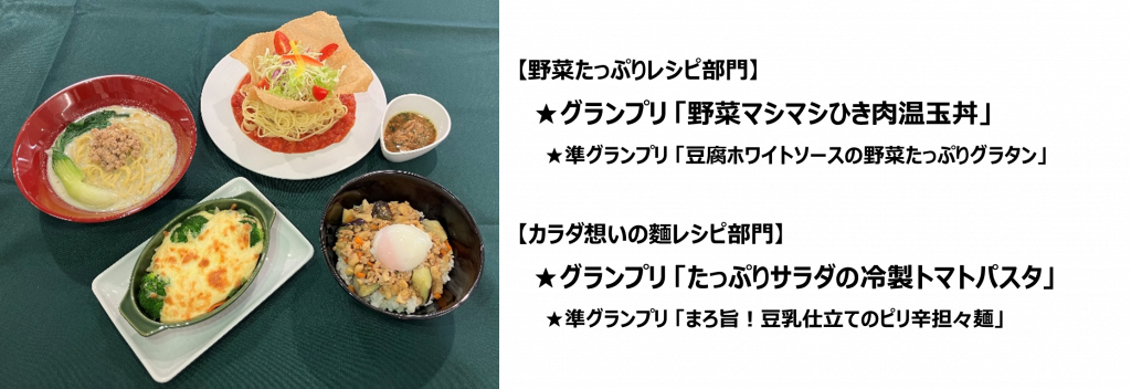内容は毎年変わり、今年は「健康づくりに役立つ、栄養バランスのとれたおいしい食事を」をコンセプトに、①野菜たっぷりレシピ部門、②カラダ想いの麺部門の2部門でアイディアを募集しました。