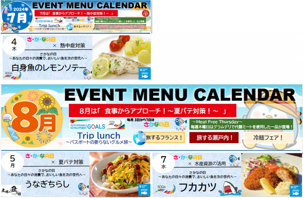 7月~8月は一部事業所にて、毎月の「さかなの日」に、夏に合わせたこだわりの「さかな」メニューを展開しました。