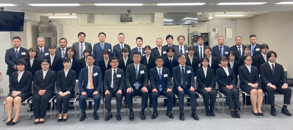 2025年4月1日、本社と同じ虎ノ門桜ビル2Fにある施設「Sy-Tras Lab(シ・トラス ラボ)」にて、入社式を執り行いました。今年度入社したのは管理栄養士、栄養士、調理師の専門職の総勢20名です。