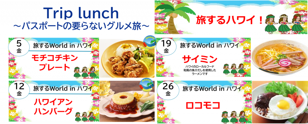 フジ産業では、2025年9月、「Trip Lunch~パスポートの要らないグルメ旅~ハワイ編」メニューを一部事業所にてご提供しています。