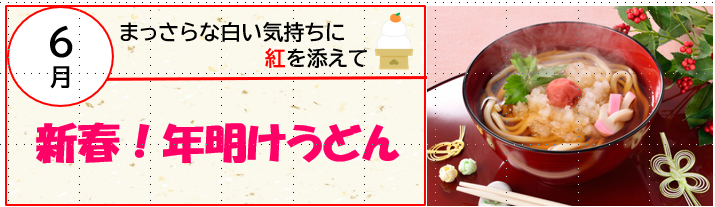 このたび、フジ産業の一部事業所で、1月6日にこの「年明けうどん」を提供しました。真っ白なうどんに、鮮やかな紅色の梅を添えて、さっぱりとした味わいに仕上げた一品は、お正月明けのおなかにやさしく沁みわたります。