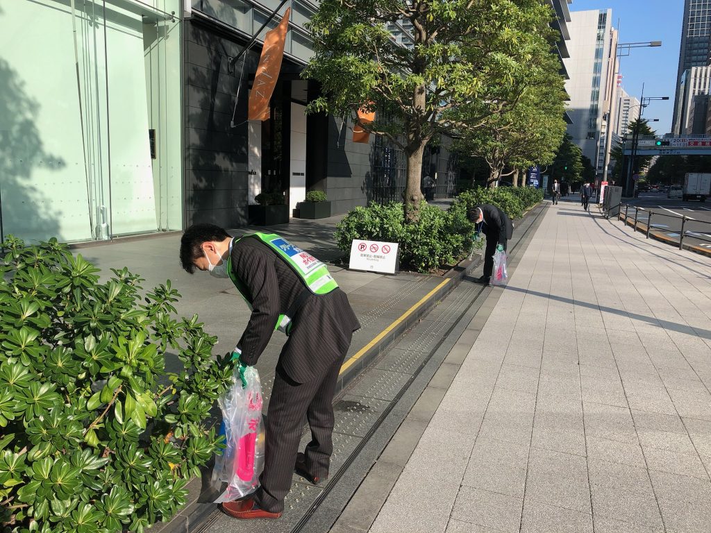 当日は当社より従業員7名が参加し、虎ノ門ヒルズ周辺を清掃しました。