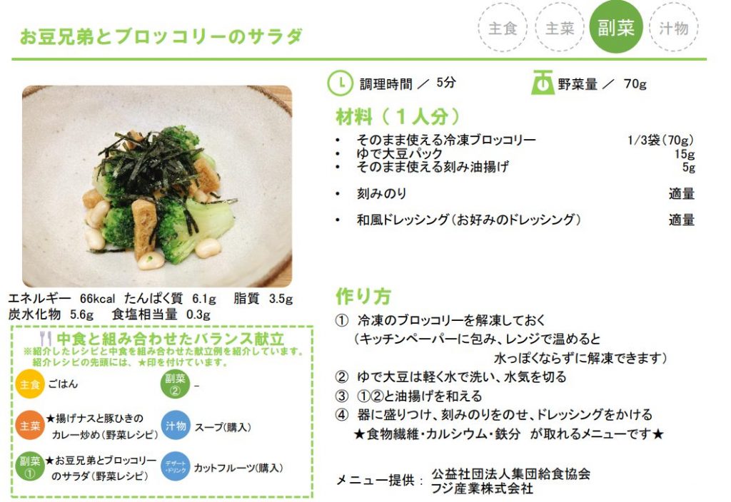 <掲載先> とうきょう健康ステーション(中食に組み合わせてバランスアップ!かんたん野菜レシピ&バランス献立)